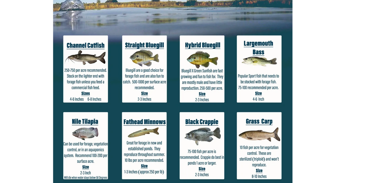 Welcome to our pond stocking guide! Discover ideal species like Bluegill, Catfish, and Tilapia, with recommended stocking rates to ensure a thriving pond ecosystem. Rates vary by pond size, location, and use of commercial fish feed. Tailor your approach for optimal results!